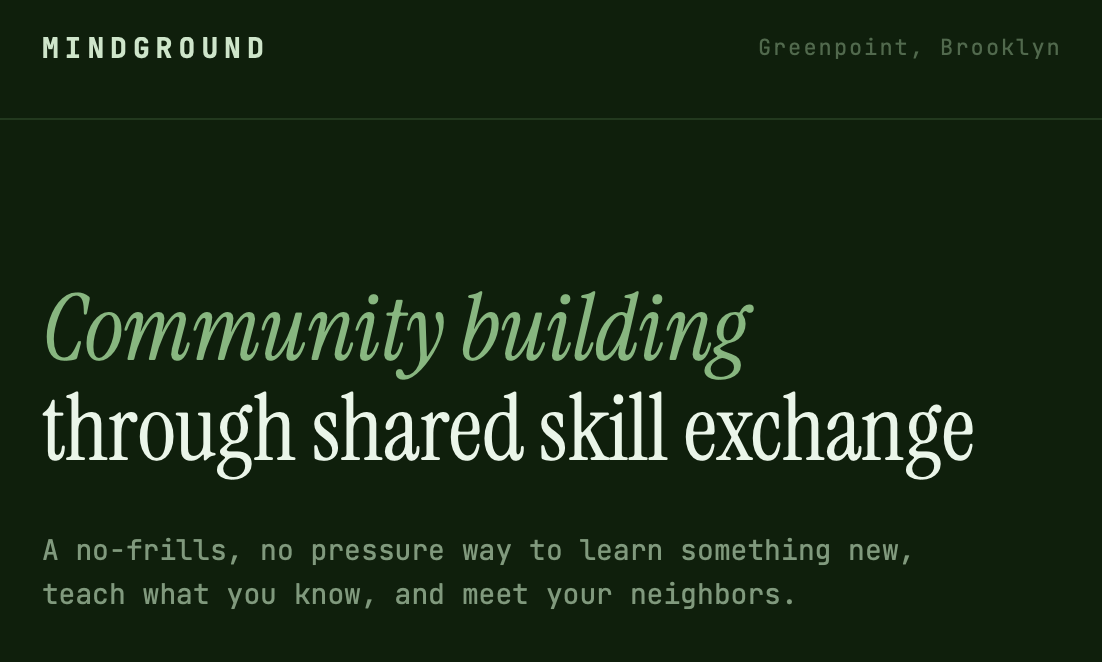 A no-frills, no pressure way to learn something new, teach what you know, and meet your neighbors.